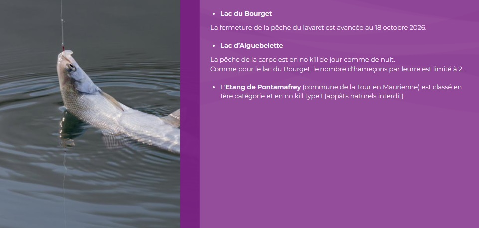 Pour la pêche en bateau sur le lac du Bourget et Aiguebelette, voir la page TYPE DE CARTE pour le nombre de cannes et hameçons suivant la carte choisie.