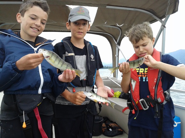 Au lac (Merci au Centre de Pêche pour le prêt du bateau) les enfants ont pu pratiquer la pêche du lavaret et de la perche.