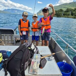 - D’autres ateliers, sur Juillet, se sont déroulées sur le lac du Bourget, grâce au bateau-ponton de l’AAPPMA.