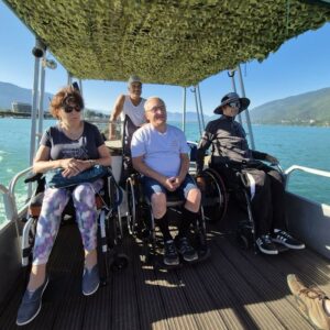 Le mardi 5 août 2025, trois personnes à mobilité réduite ont eu le plaisir de vivre une superbe sortie de pêche à bord de l’OSMOSE, notre bateau-ponton spécialement adapté.